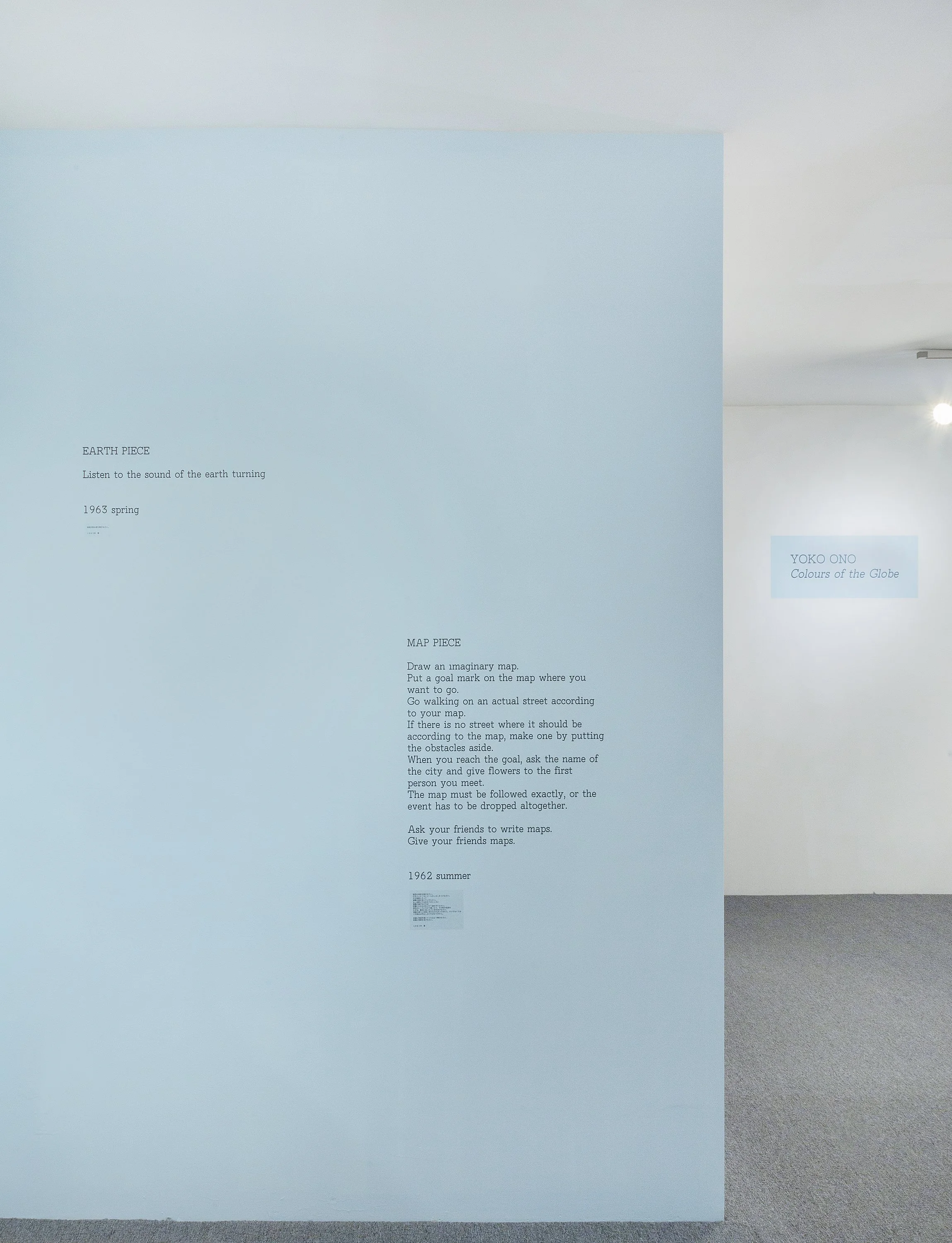 Other upcoming exhibitions and projects include: Yoko Ono: Music of the Mind, slated to open on October 18 at the Museum of Contemporary Art Chicago, and her current installation-in-progress at the John F. Kennedy Airport in New York City.